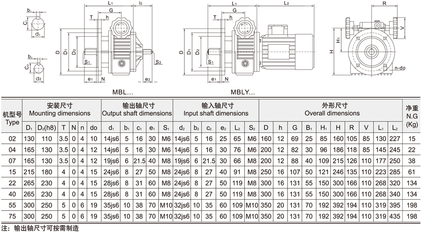 MB系列無級變速機(jī)臥式與立式安裝尺寸