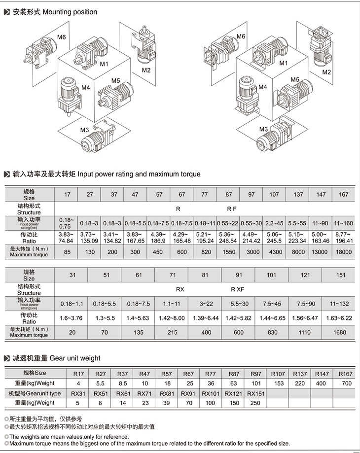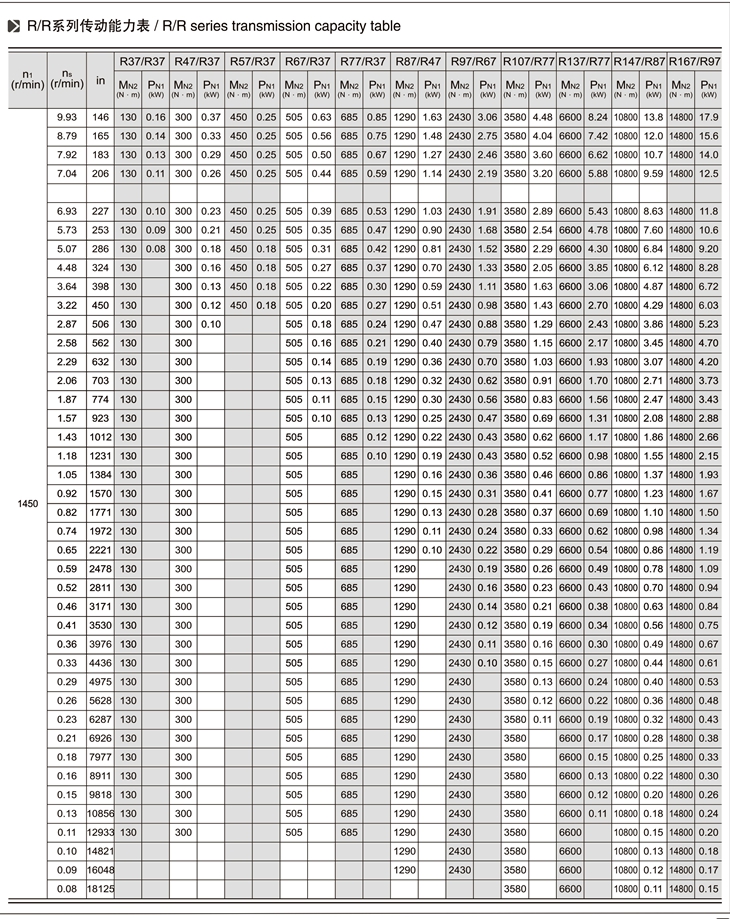 R系列斜齒輪減速機(jī)技術(shù)參數(shù):