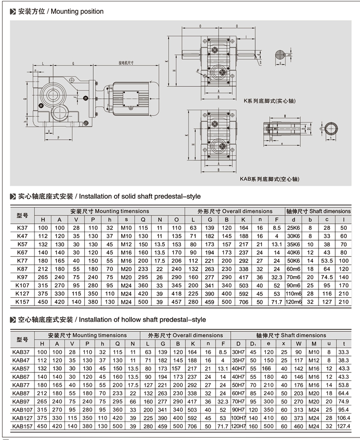 KF-軸伸式、法蘭安裝;KAF-軸裝式、法蘭安裝